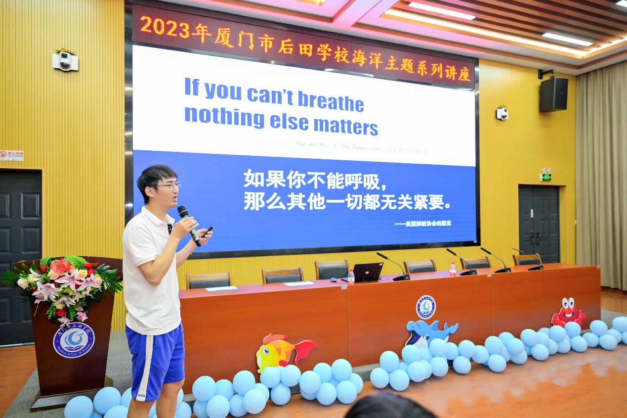 In addition, a number of lectures were held from 27 April to 5 June. Dr. Yangyang Zhao, assistant research scientist at MEL, gave lectures on ocean deoxygenation to primary and university students, based on his own research in ocean deoxygenation and climate change. Dr. Xin Lin, associate professor at MEL and expert in phytoplankton ecology, gave lectures on algal blooms in the ocean, explaining the relationship of harmful algal blooms and ocean deoxygenation. These lectures gave students a more direct access to scientists working in ocean deoxygenation.