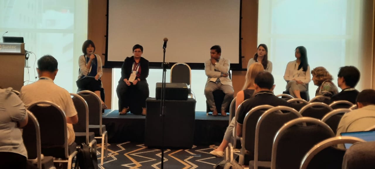 The invited panels are on stage sharing their opinions and discussing with all participants. From right: Hsiao-Wen WANG, Phaik Eem LIM, Punyasloke BHADURY, Gizem Mestav SARICA and El Lynn YEOH.