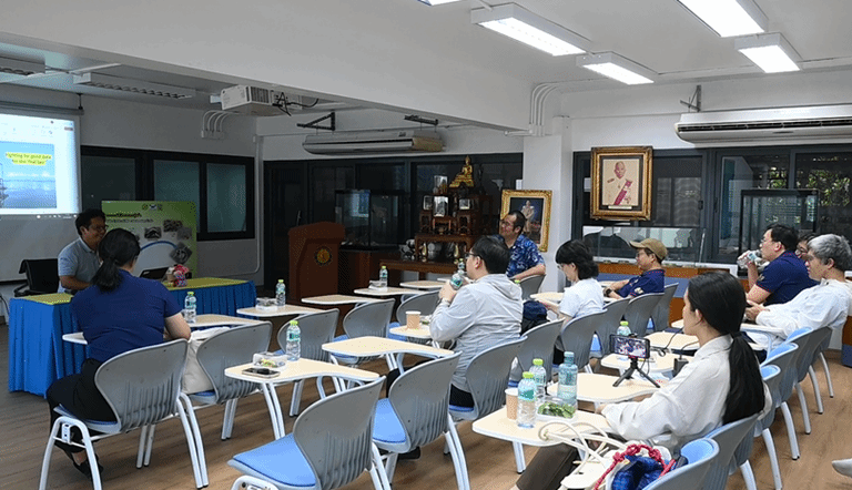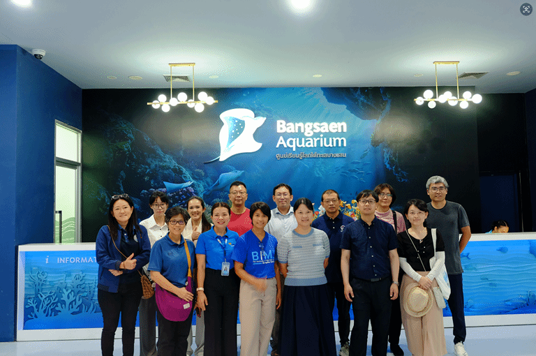 On October 22, 2025, delegates participated in a rewarding visit to the Bangsaen Institute of Marine Science (BIMS) at Burapha University (BUU). The Institute's Director, Dr. Bunlung Nuangsaeng, extended a warm welcome and shared his vision for ocean healthcare. He detailed how marine scientists and academics actively engage with local areas, particularly the Chon Buri Province coastline, which is a focal point for intense marine and coastal activities, including tourism, industrial and port operations, and fishing. Subsequently, a dedicated team—comprising Assistant Professor Anukul Buranapratheprat, Mr. Arvut Munhapon, and Ms. Supattra Taleb—introduced the Institute's extensive 30-year history of red tide research along the Bangsaen Coast. They also presented the recently deployed automated monitoring station designed for areas experiencing significant eutrophication. Following the technical presentations, Ms. Supattra Taleb and Ms. Wiracha Charoendee, Assistant Director of Special Affairs of Bangsaen Institute of Marine Science guided the delegation through the Institute's exhibition areas for an informative exchange and learning experience.