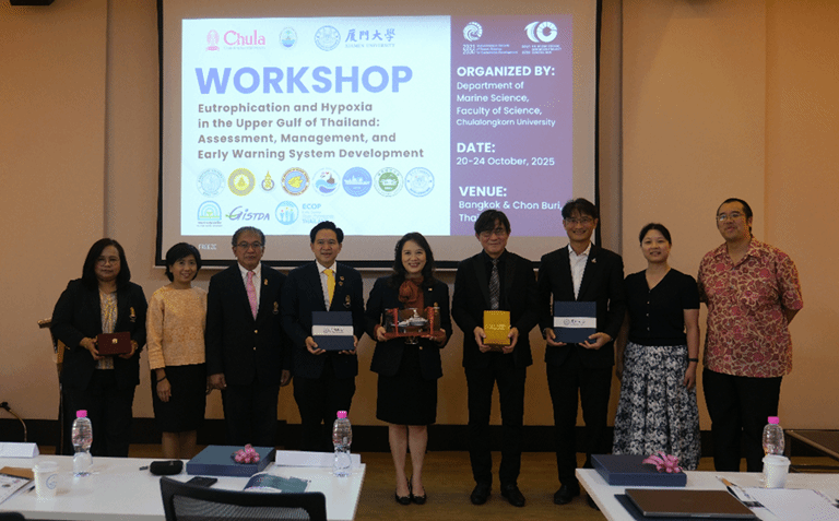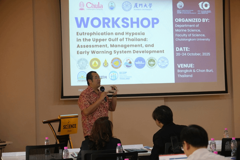 The COASTAL-SOS Thailand Workshop 2025, organized by the Department of Marine Science (DMS), Faculty of Science, Chulalongkorn University (CU), Thailand, and co-organized by Xiamen University (XMU) and the Department of Marine and Coastal Resources (DMCR), with support from Burapha University (BUU), Kasetsart University (KU), and others, was recently held successfully in Bangkok and Chon Buri, Thailand. The workshop focused on “Eutrophication and Hypoxia in the Upper Gulf of Thailand: Assessment, Management, and Early Warning System Development”. From October 20th to 24th, almost 100 participants from over 10 universities and institutions embarked on a fulfilling and unforgettable exchange journey.