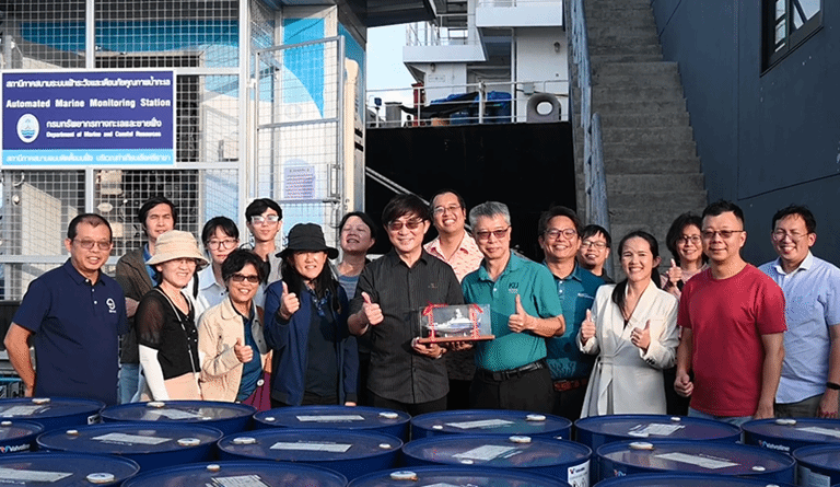 On the afternoon of October 22, 2025, a Marine Auto-station established by the Department of Marine and Coastal Resources (DMCR) in Si Racha, Chon Buri Province, was introduced by Ms. Mitila Pransilpa, Fishery Biologist (Senior Professional Level) from the DMCR, and Assistant Professor Thanasapong Phokwanit of Kasetsart University's Department of Marine Science; this station is key to the DMCR's goal of evaluating coastal water quality and developing a future warning system. The visit, which included welcome speeches and a discussion on future collaboration, was also attended by the Dean of the Fisheries Faculty and Assistant Professor Suriyan Tunkijjanukij from Kasetsart University, underscoring the strategic partnership between the two institutions in advancing marine monitoring efforts.