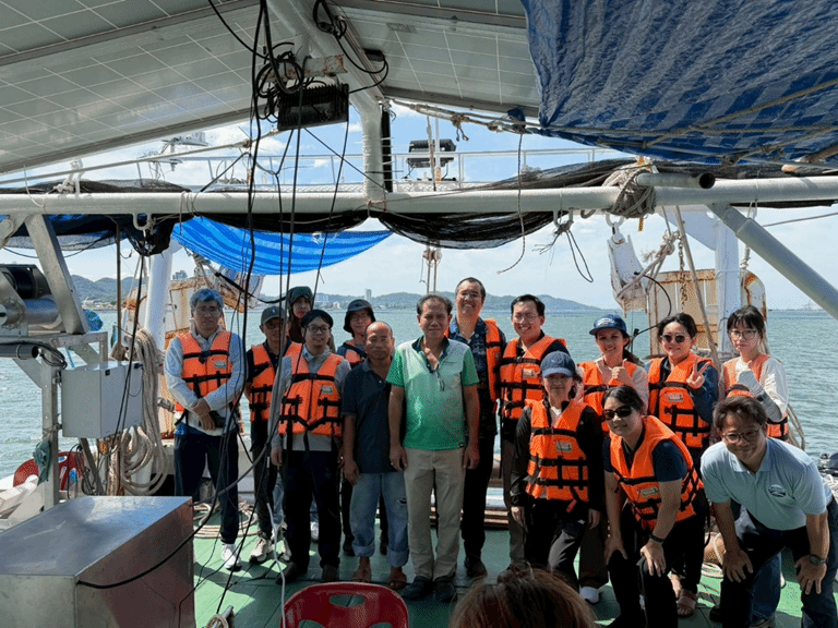 Group photo with the Kasetsart Research Vessel 1’ Captain Bandit Sripa