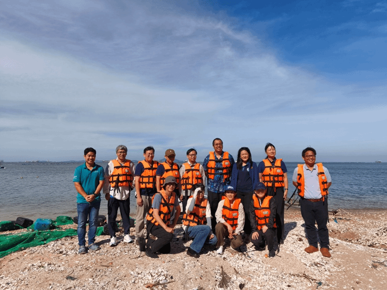 During October 23-24, 2025, COASTAL-SOS Delegates received warm welcome at Si Racha Fisheries Research Station by Dean of the Fisheries Faculty and Assistant Professor Suriyan Tunkijjanukij from Kasetsart University. Ms. Kanokwan Khaodon (Practitioner Fisheries Biologist) and Mr. Saroj Rerndamrih (Practitioner Fisheries Biologist) provided a comprehensive tour, introducing the guests to the Oceanography Laboratory, the Aquatic Animal Hatchery, and various projects being undertaken by the Faculty of Fisheries. Assistant Professor Tanuspong Pokavanich and Dr. Khanittha Uthaipan from the Department of Marine Science, Faculty of Fisheries, Kasetsart University, along with Ms. Mitila Pransilpa from the DMCR, escorted the delegation by boat to the GOT001 Telemetry Marine Monitoring Station. This station, the first real-time meteorological and oceanographic monitoring station in Thailand, is located at the Si Racha Fisheries Research Station and is supported through a collaboration with the Hydro-Informatics Institute (HII). The delegation was also welcomed aboard the Kasetsart Research Vessel 1. Captain Bandit Sripa and Assistant Professor Tanuspong Pokavanich provided a guided introduction and demonstration of the vessel's marine survey equipments.